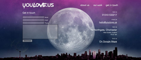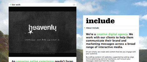 一個(gè)使用高清晰度照片作為網(wǎng)站背景圖的完美實(shí)例。在調(diào)整瀏覽器大小后網(wǎng)站的背景圖也會(huì)隨之?dāng)U展。